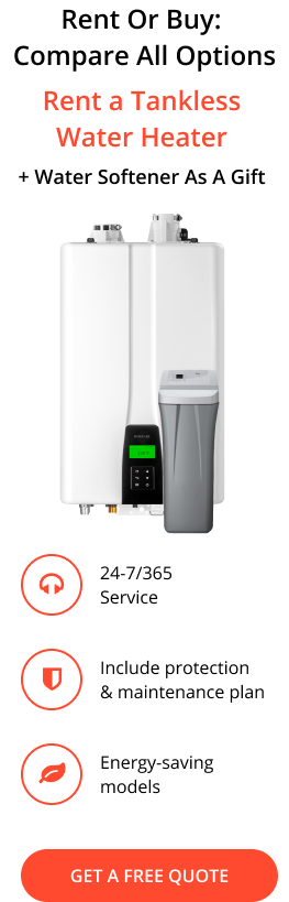 A tankless water heater has many advantages over a conventional water heater. Not only does it provide on-demand water whenever you need it, it can also reduce your energy bills, help the environment, and help to conserve space in your home. Our tankless water heater rentals are available with low monthly payments, plus you can take advantage of the many benefits going “tankless” offers, including: